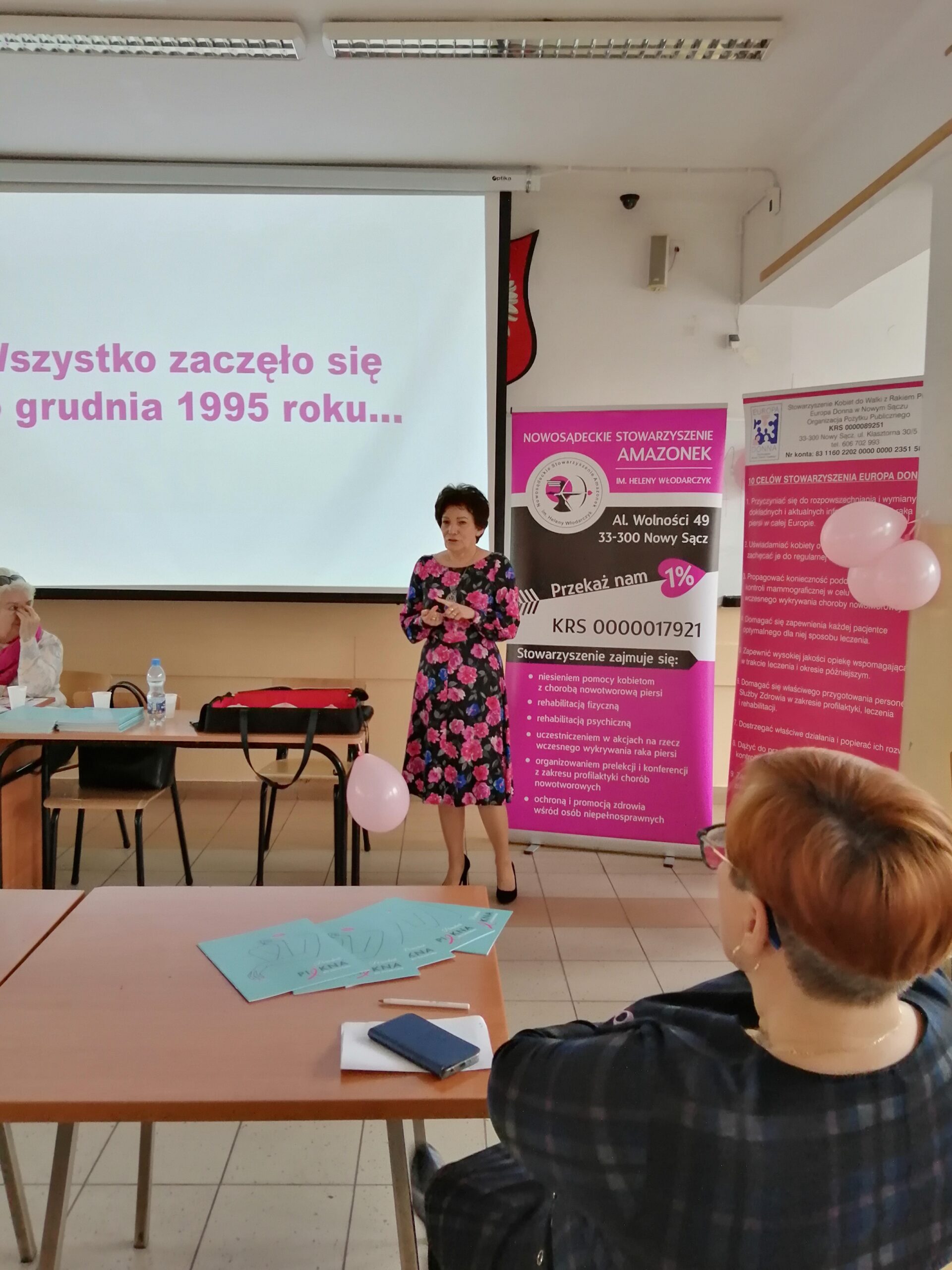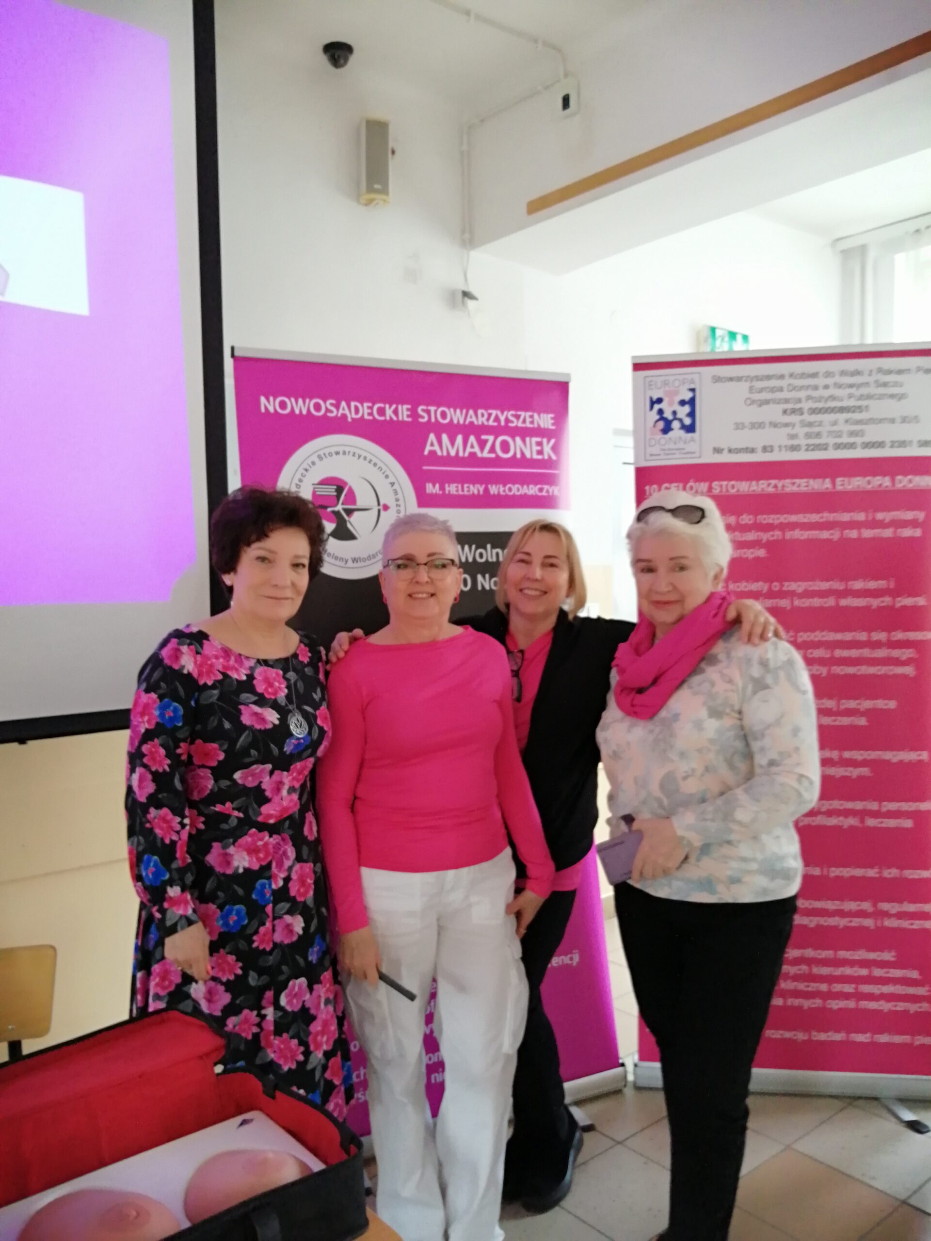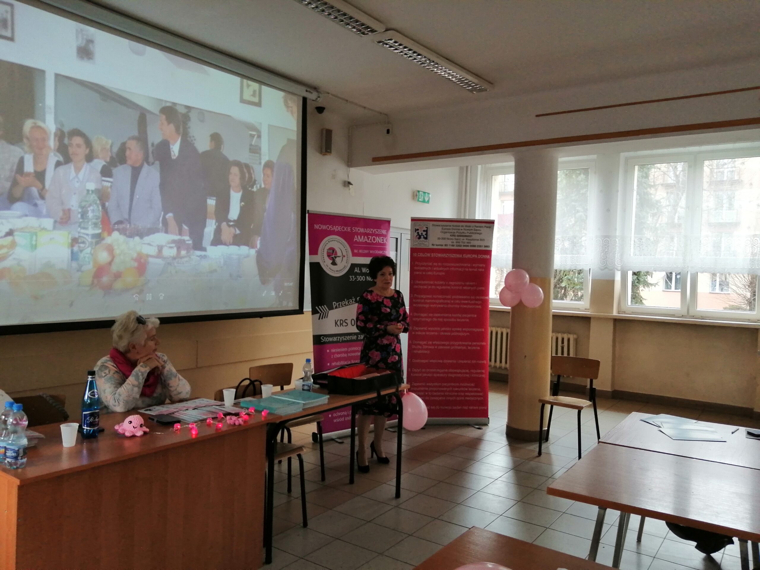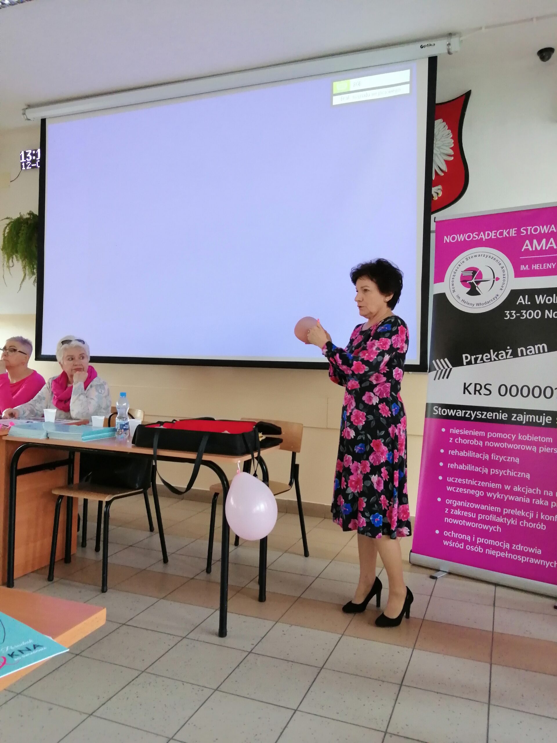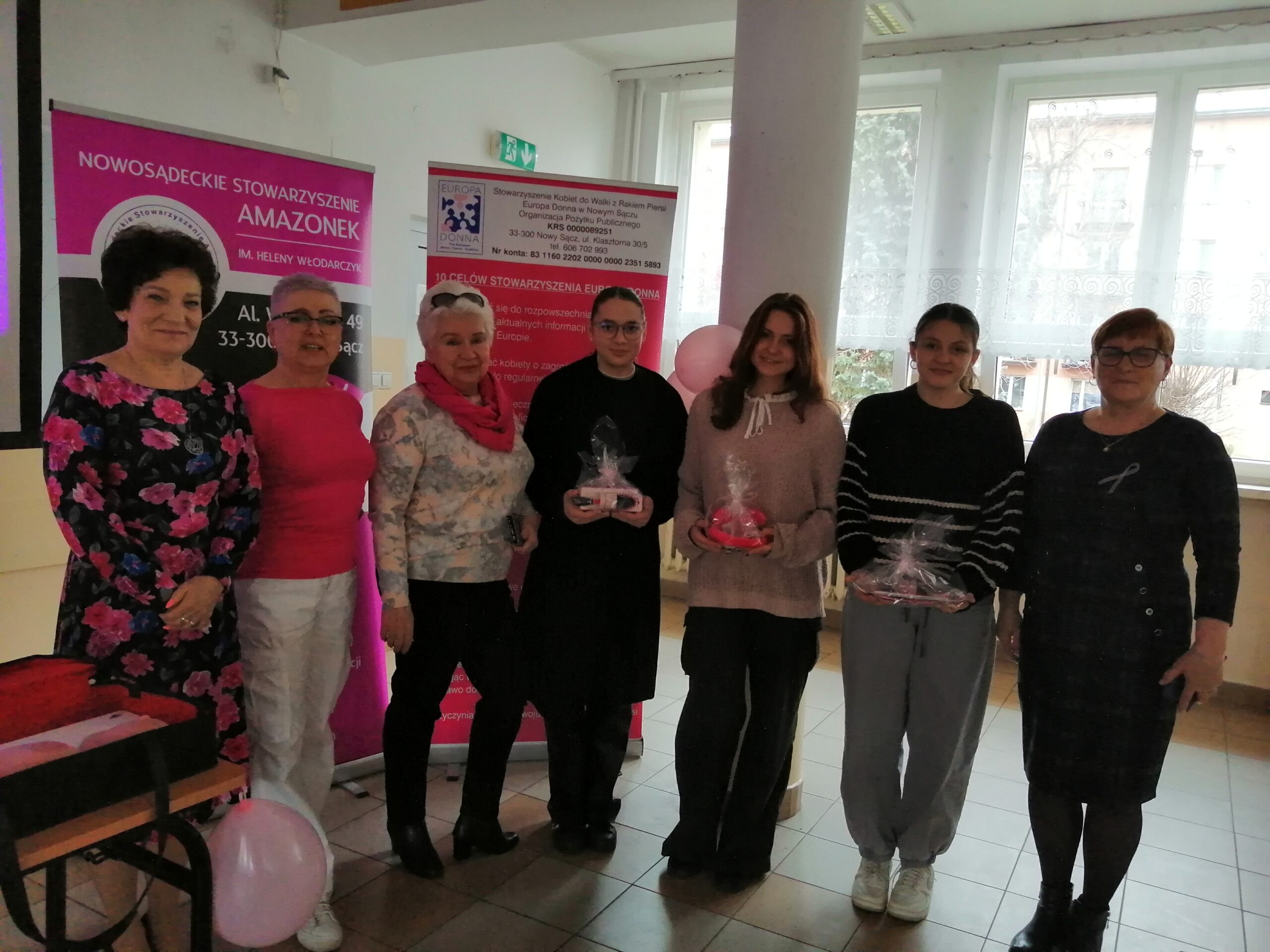 Zajęcia przeprowadziły panie ze Stowarzyszenia Europy Donny oraz pani Krystyna Kronenberger ze Stowarzyszenia Sądeckich Amazonek. Oba Stowarzyszenia zajmują się niesieniem wszelakiej pomocy kobietom, uświadamiają o zagrożeniu rakiem oraz zachęcają do regularnej kontroli własnych piersi i regularnej aktywności fizycznej. Zdrowy styl życia to podstawa, aby cieszyć się zdrowiem i życiem. Pamiętajmy o tym.