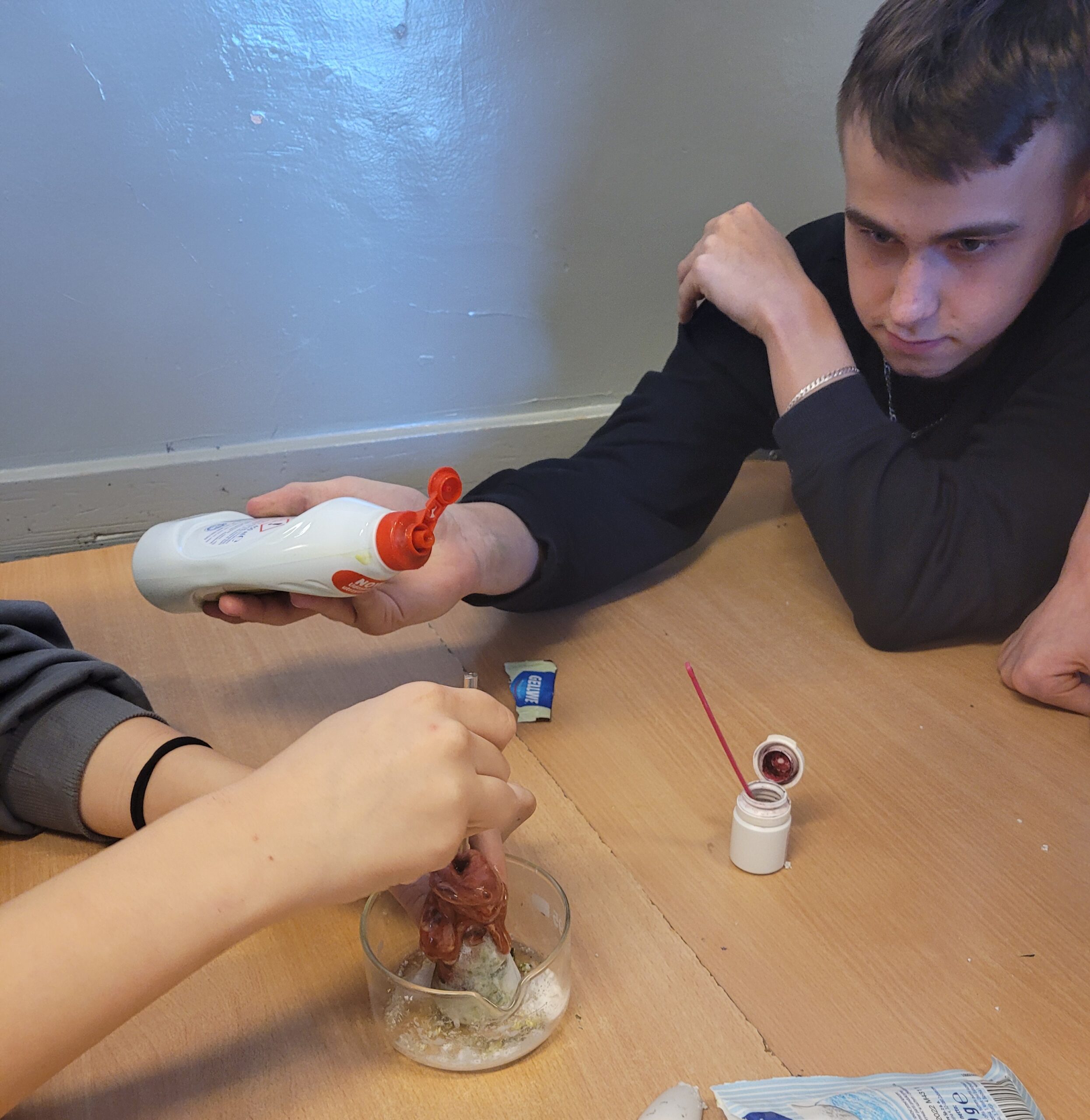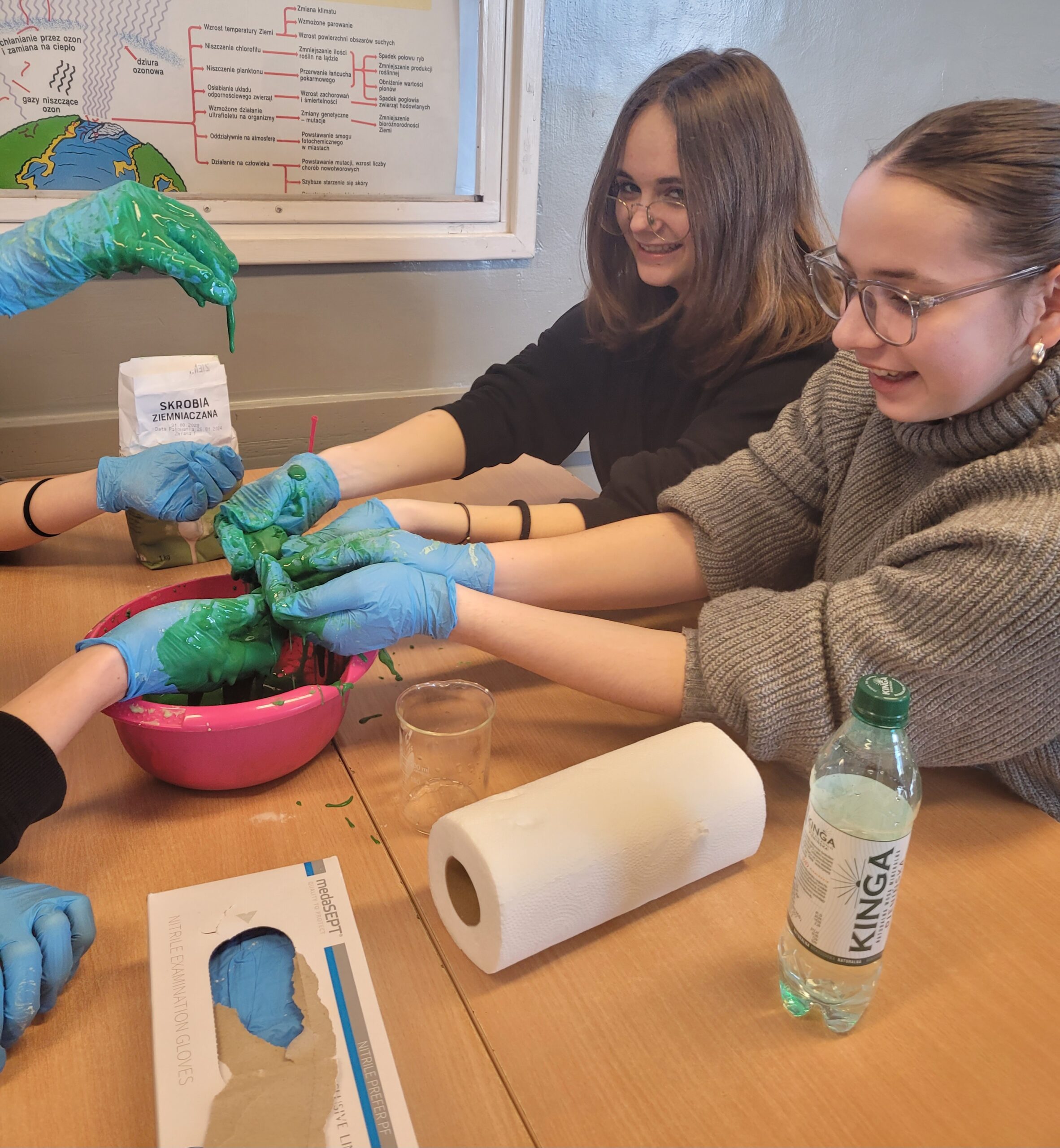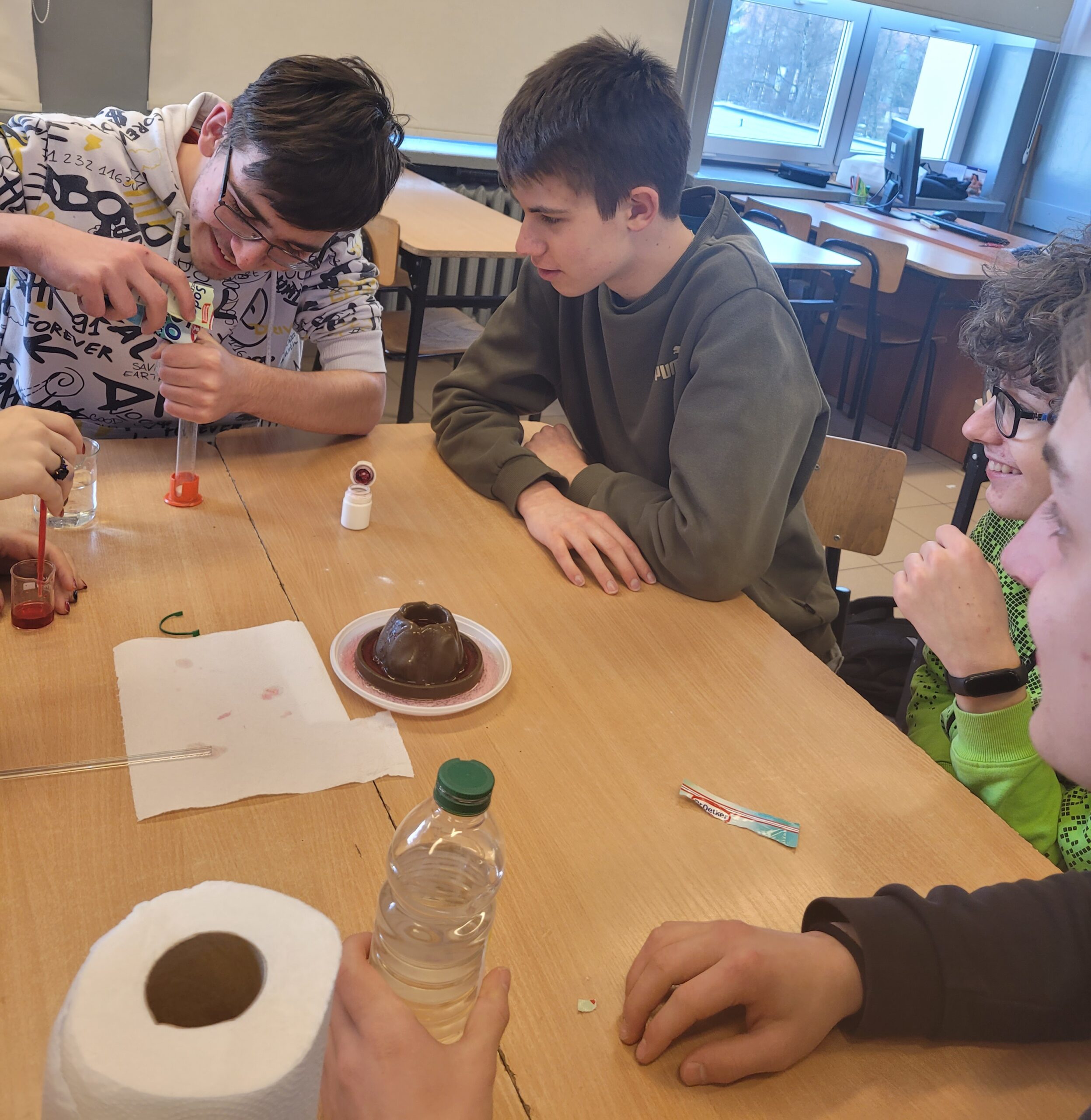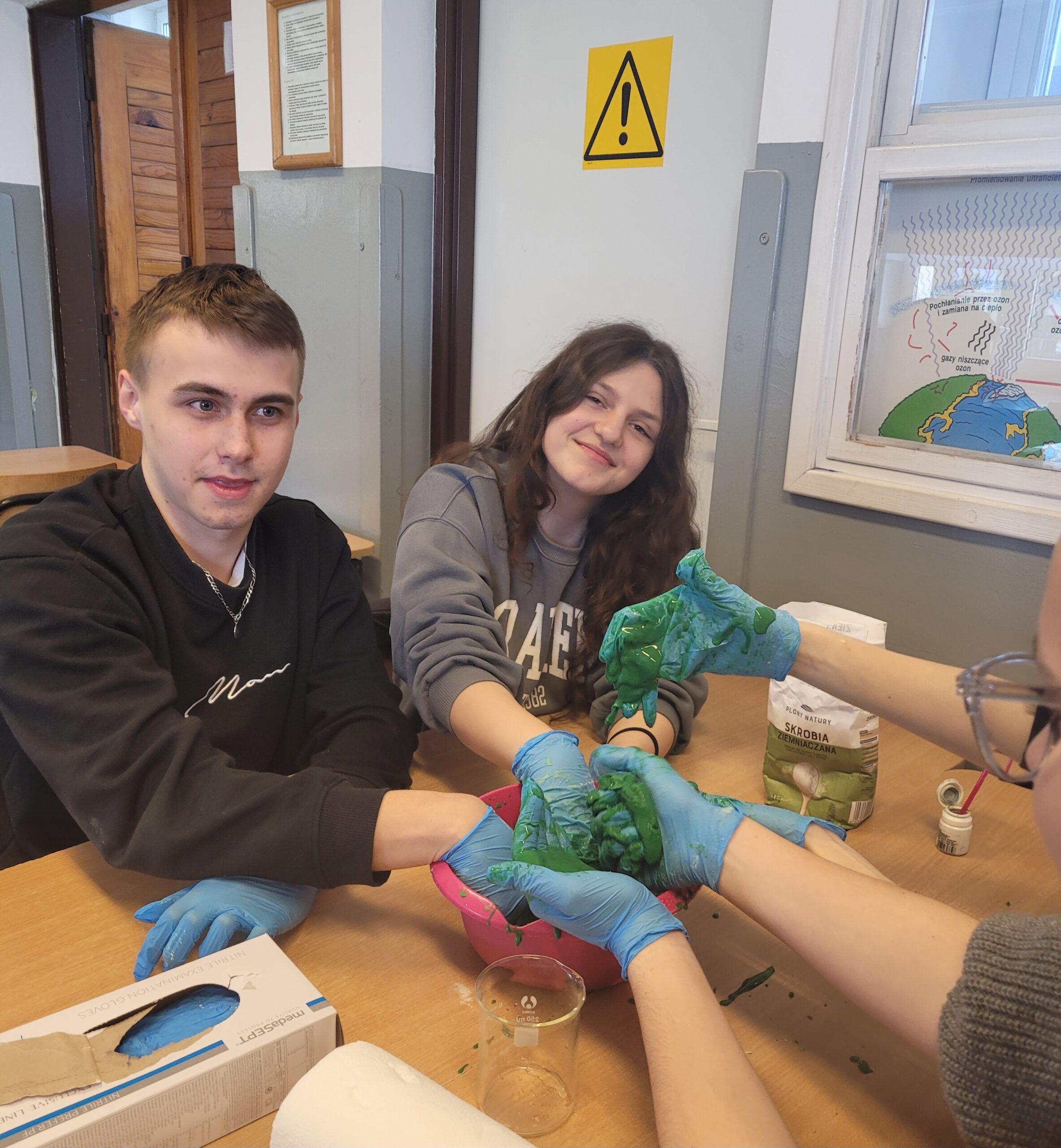 Na zajęciach koła chemicznego uczniowie przeprowadzani eksperymenty, które pomogły zrozumieć mechanizm działania reakcji chemicznych.