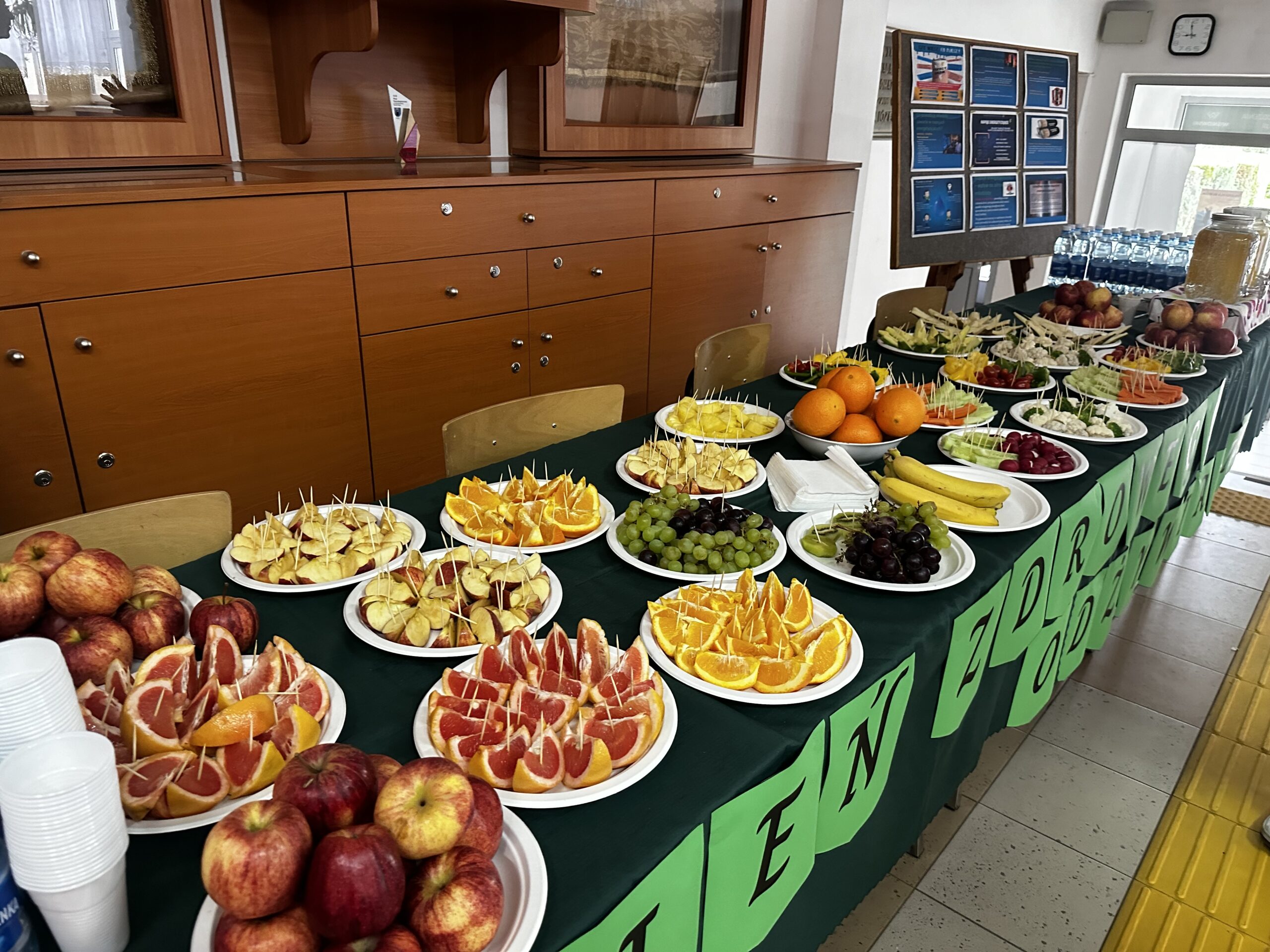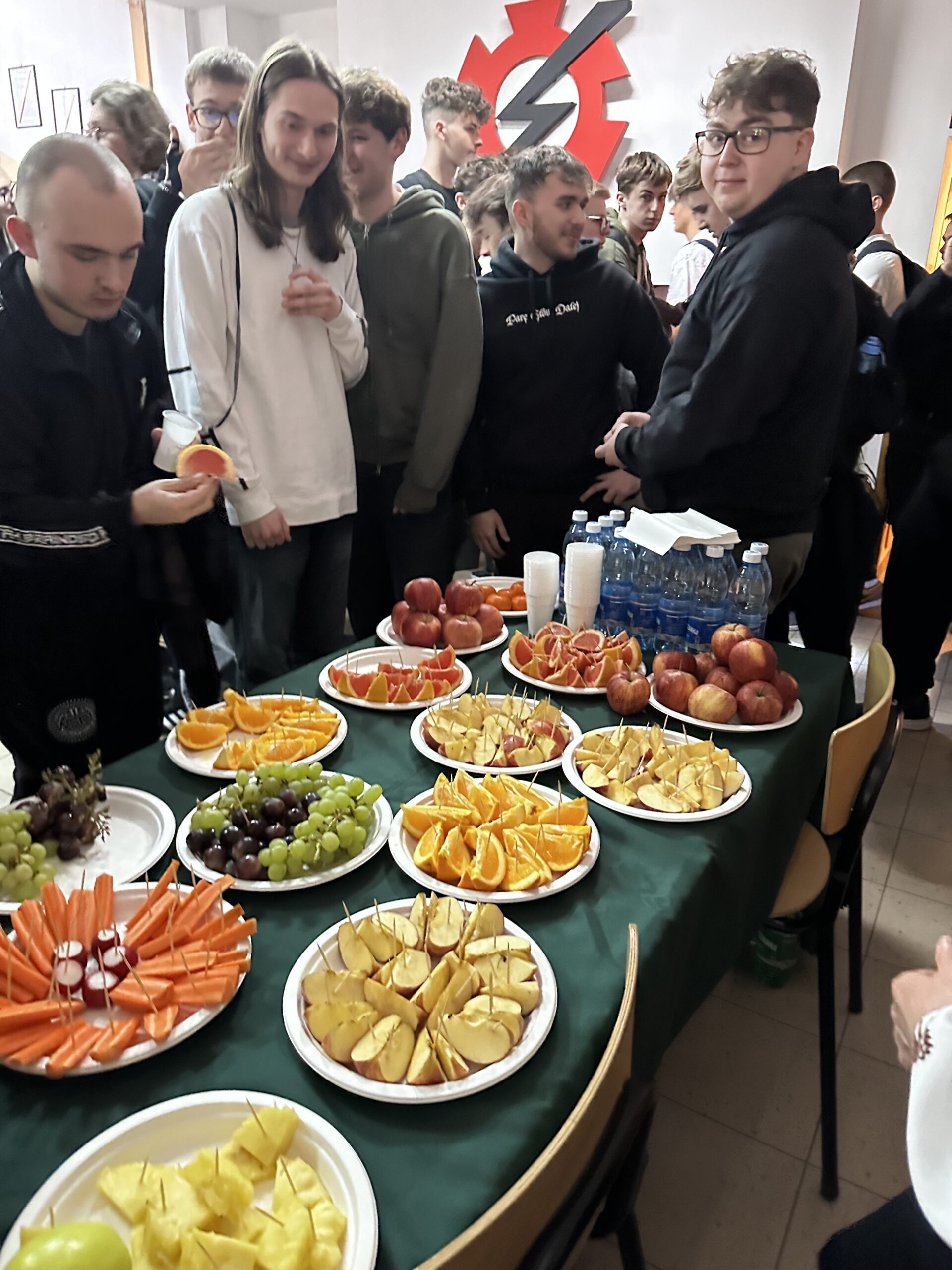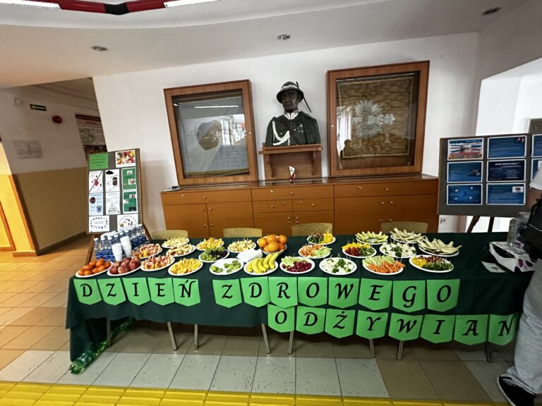 Uzupełnieniem tego wydarzenia był kiermasz owocowo – warzywny zorganizowany we współpracy z wolontariuszami oraz uczniami klasy 1d, który cieszył się ogromnym zainteresowaniem. Uczniowie mogli spróbować zdrowych przekąsek owocowo – warzywnych oraz napojów na bazie świeżo wyciskanych owoców. Mamy nadzieję, że zdrowe odżywianie stanie się naszą codziennością, a także sprawi, że świadomość wyboru potraw