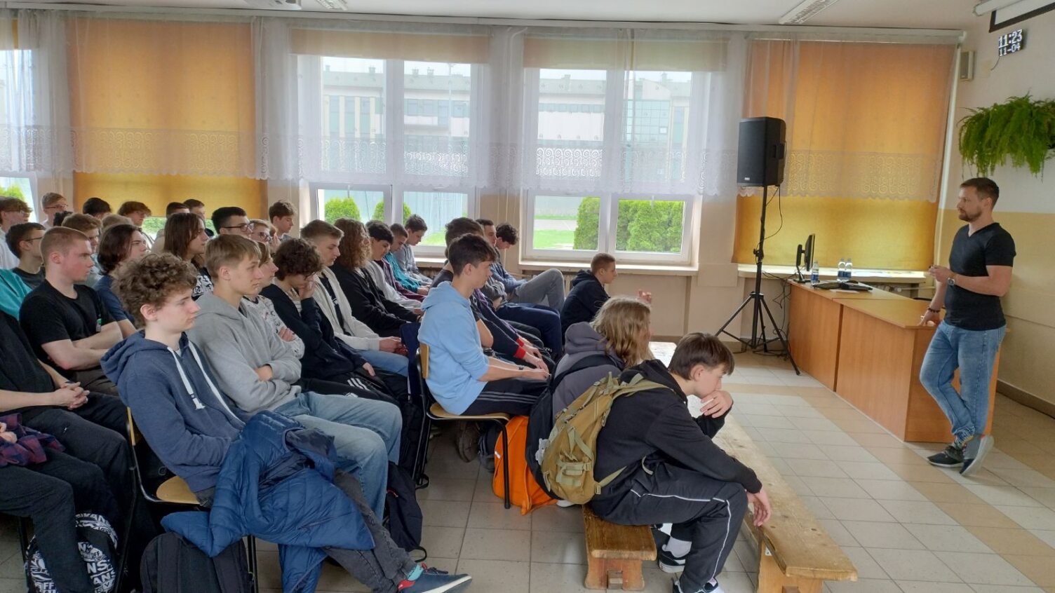 Kolejnym gościem naszego wydarzenia był Pan Tomasz Goliński – dietetyk oraz trener personalny, który w ciekawy sposób rozmawiał z uczniami na temat aktywności fizycznej, suplementach diety, a także zwrócił uwagę na jakość spożywanych przez nas produktów.