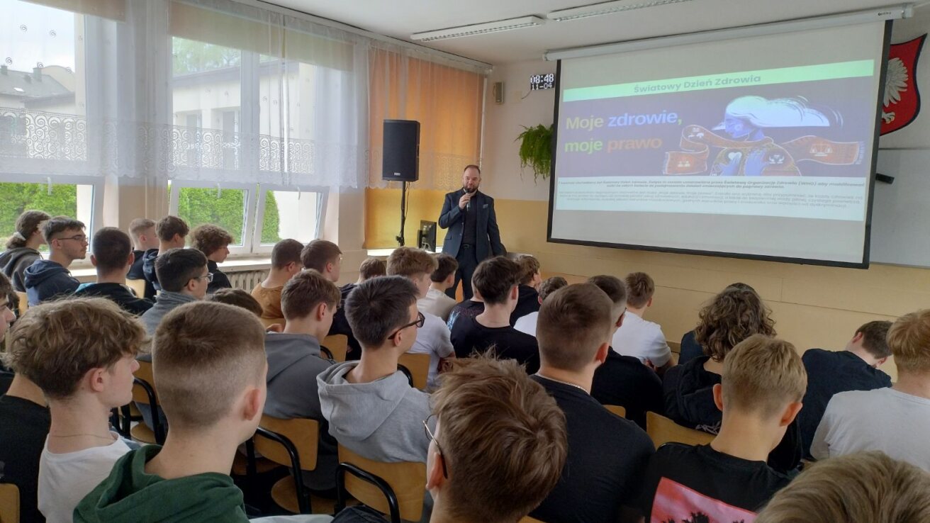 11.04.2024r. w naszej szkole odbył się Dzień Zdrowego Odżywiania. Akcja ta miała na celu promocje zdrowego odżywiania oraz aktywności fizycznej. W ramach tego dnia gościliśmy prelegenta Pana mgr inż. Marka Zborowskiego z wydziału lekarskiego i nauki o zdrowiu Akademii Nauk Stosowanych w Nowym Sączu, który przybliżył młodzieży szeroką wiedzę na temat zdrowego żywienia oraz negatywnych skutków spożywania energetyków. Zaprezentowane informacje zostały również uzupełnione o wyniki badań ankietowych, które zostały przeprowadzone wśród naszej młodzieży na temat spożywania napojów, w tym napojów energetycznych.
