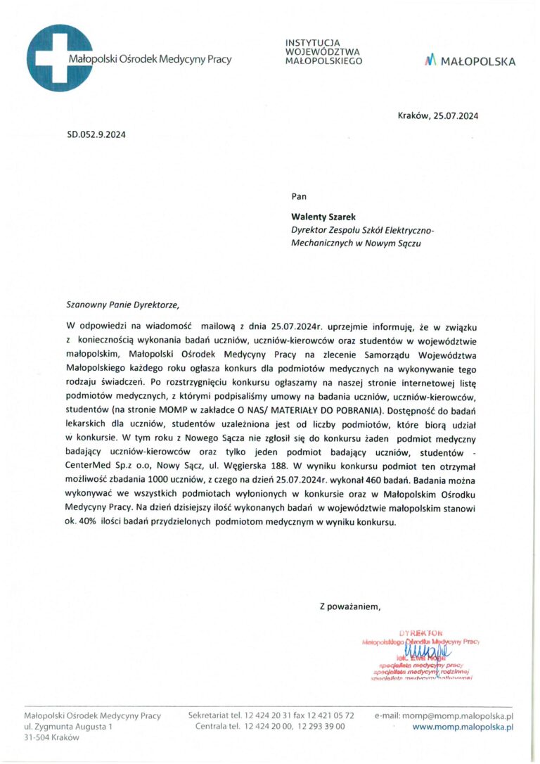 Informacja dotycząca badań lekarskich w medycynie pracy