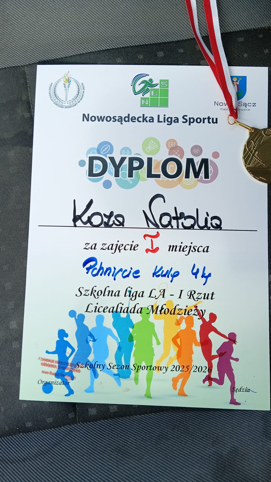 🥇 Natalia Koza – I miejsce w pchnięciu kulą/4kg/