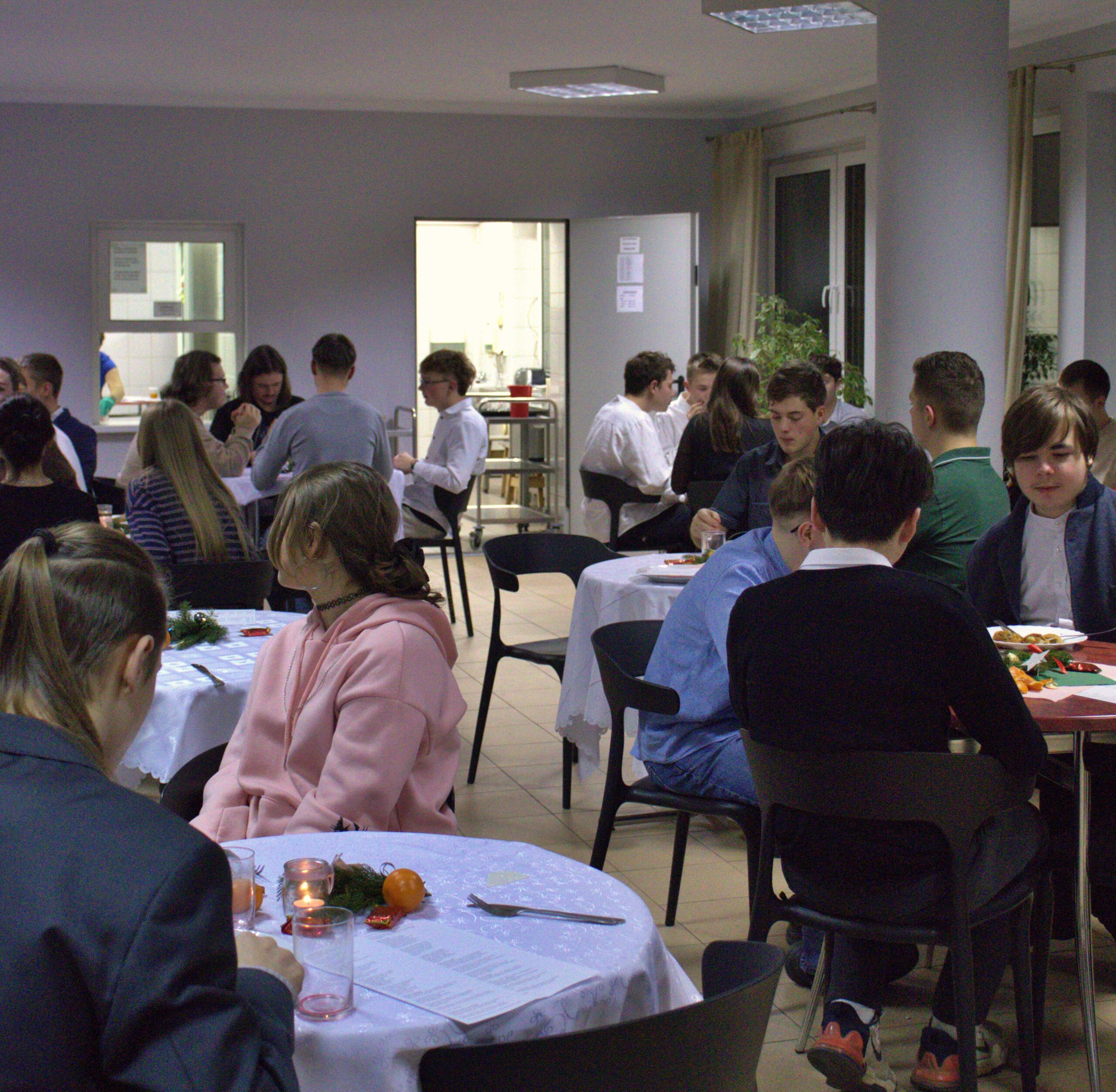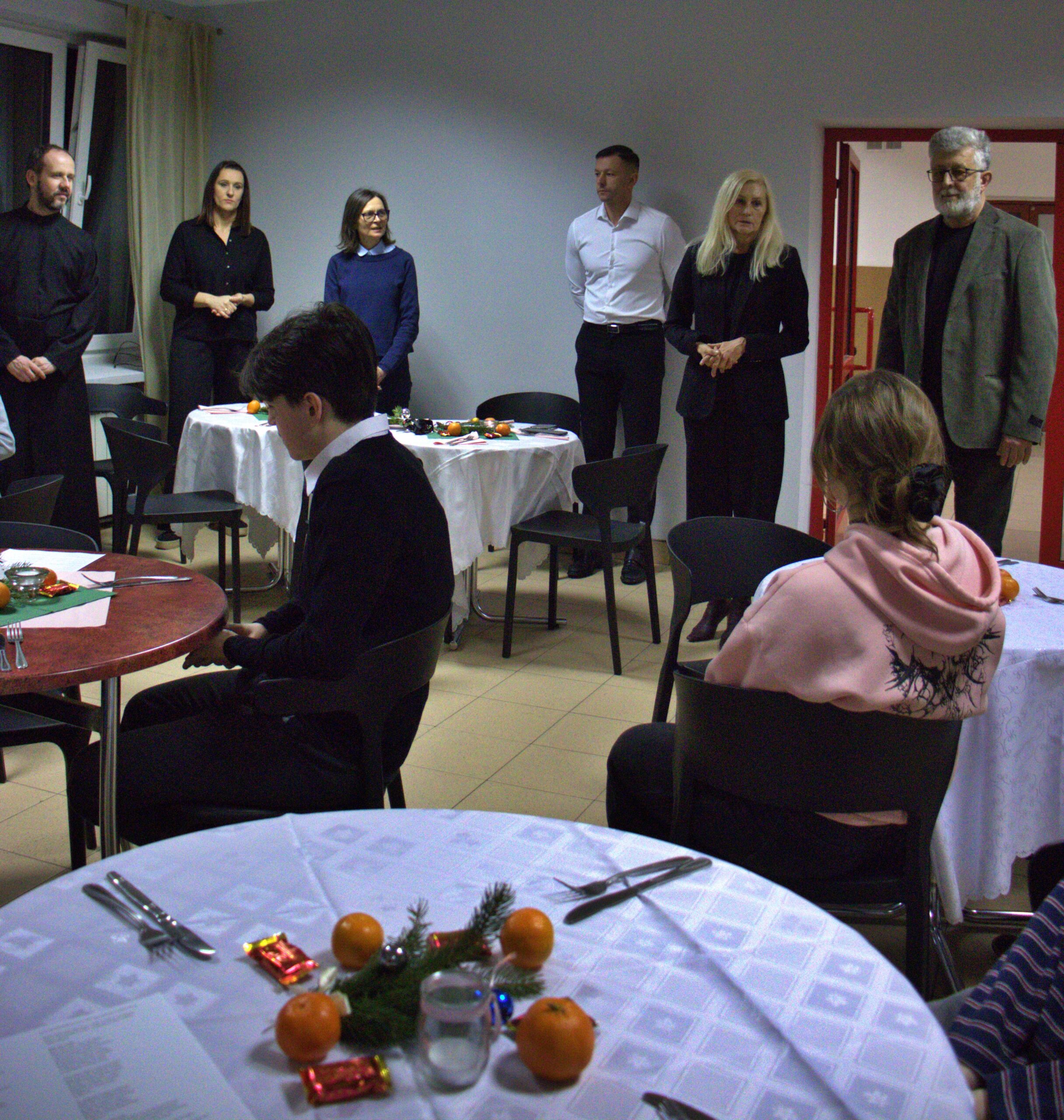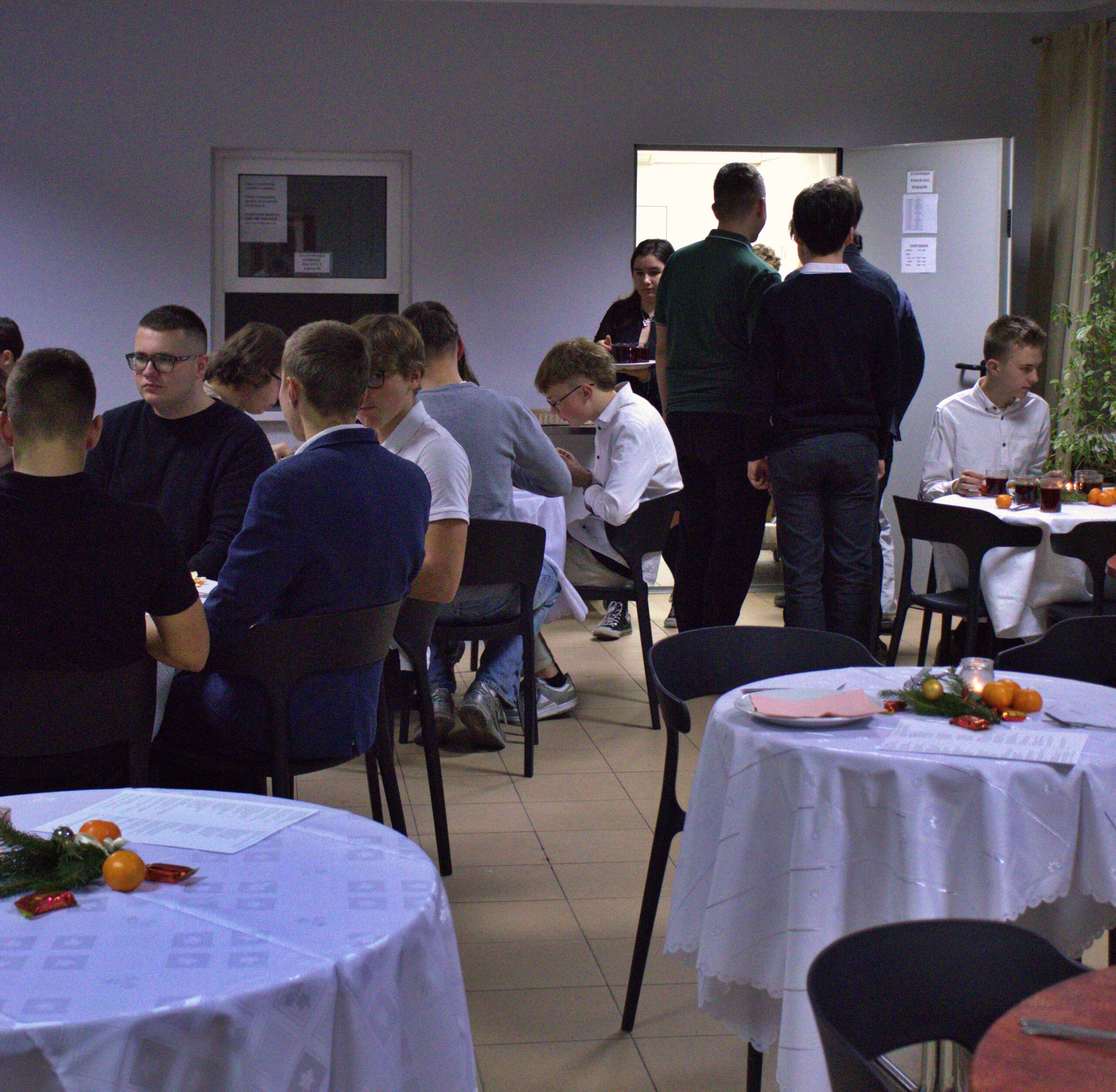 Uroczysta kolacja wigilijna w naszym internacie odbyła się w dniu 17.12.2025r. Młodzież oraz pracownicy internatu złożyli sobie świąteczne życzenia, usiedliśmy razem do wspólnego posiłku, a po nim odbył się koncert kolęd przygotowany przez naszych mieszkańców.